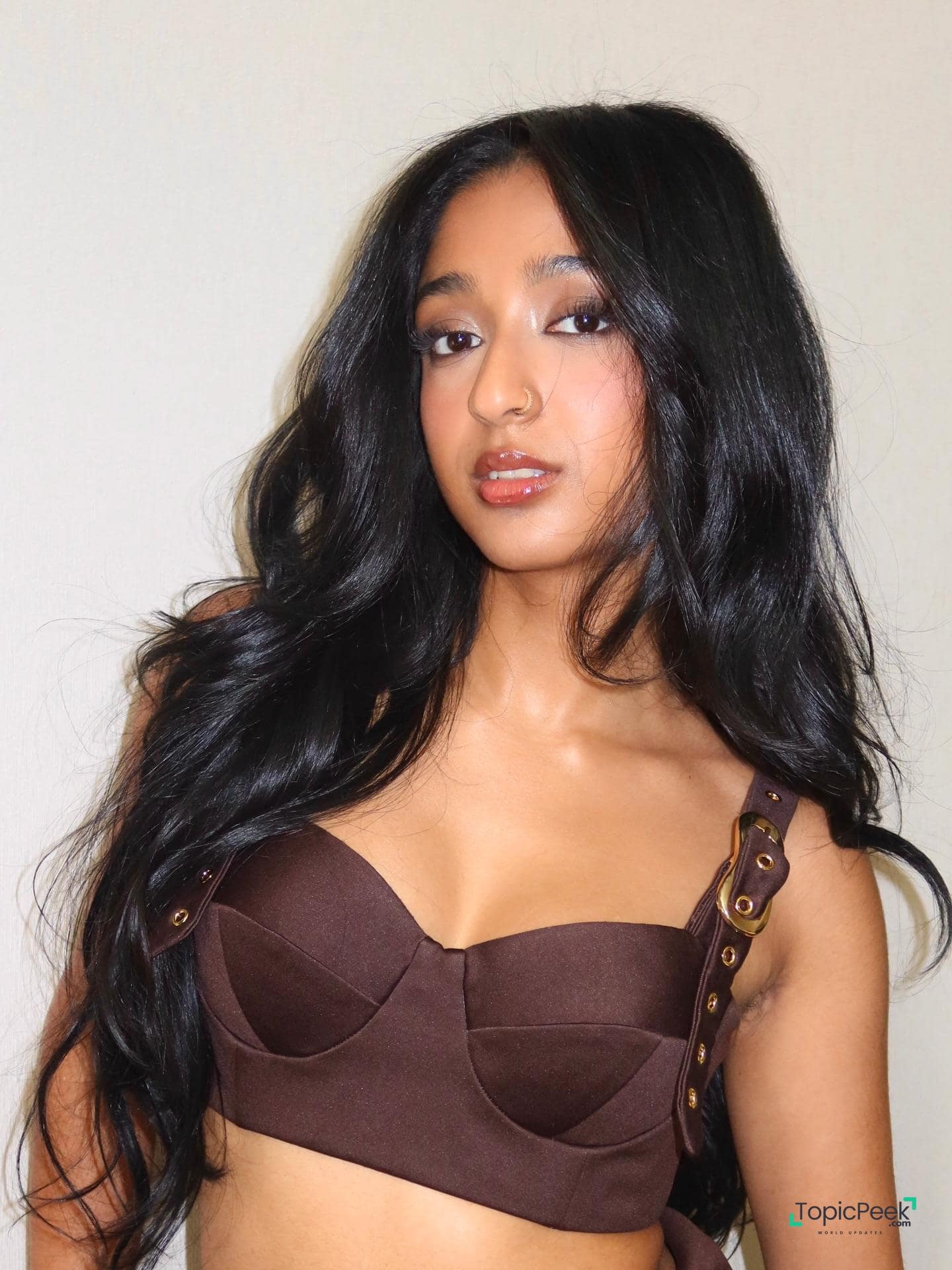 Maitreyi Ramakrishnan embraces contemporary glam in a bustier-style top featuring sculpted cups and standout straps. A perfect mix of daring design and polished elegance that fashion lovers adore.